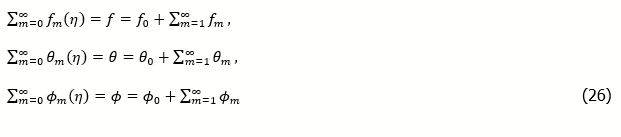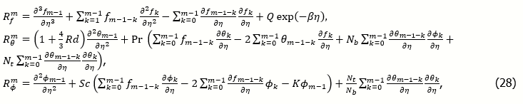 where ai are constants for i =1-7 and fm*(η), θm*(η),ϕm*(η)are special solutions.
