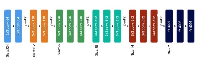 VGG-16 is a prominent deep neural network designed for tasks like image classification and feature extraction. It features 16 trainable layers, comprising 13 convolutional layers and 3 fully connected layers. The architecture utilizes 3×3 convolutional filters arranged in sequence to identify detailed spatial patterns and incorporates max-pooling layers to reduce dimensionality. Its consistent structure offers a balance between simplicity and computational efficiency. Renowned for its strong generalization capabilities across diverse computer vision problems, VGG-16 continues to serve as a reference model. Although it demands more computational resources than newer architectures, it is valued for its reliability and robust performance Figure 4.