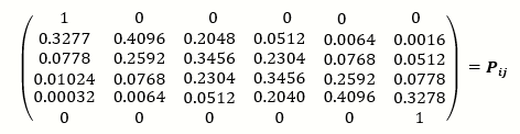 We can use (5) to describe a “transition probability matrix” for the Wright-Fisher model, which gives the probability of going from any state i to any state j in one generation, 1.