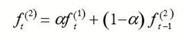 Among them, ft (1) is the exponential smoothing value of the model, ft (2) is the quadratic exponential smoothing value of the model. 23 The Brown linear exponential smoothing model using these two smoothed values is as follows: