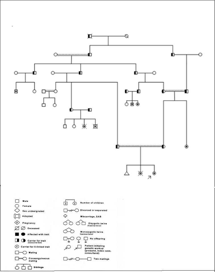 The patient was the third child of a consanguineous marriage. The first child aborted in the third month of the pregnancy and the second child revealed EVC syndrome manifestations – short stature, six-fingered, heart disease and nails deformity – and died at the age of six months because of bacterial meningitis. The Mother, at the age of twenty one, gave birth to the third child with three and a half kilograms of weight, 49 cm height, head circumference of 38 cm, and appearance of a natural person through a vaginal delivery. In the family tree of the patient (Graph1), this syndrome has occurred in eight people, the closest one was her 24-year-old aunt who did not cooperate for interview and examination, but her parents were healthy. The patient has normal intelligence and educates in regular schools.