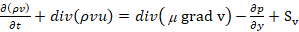 Where ρ denotes the force on the fluid, μ is the dynamic viscosity, Su, Sv and Sw are the source term.