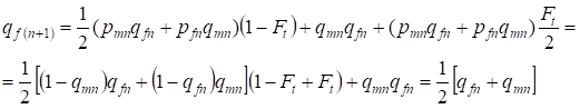 where pmn is the dominant alleles A frequency in generation n at men and pfn - at women. For the recessive alleles a accordingly qmn and qfn . Besides it is used qmn =1 - qmn and pfn = 1 - qfn.