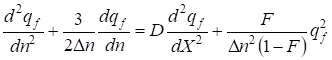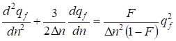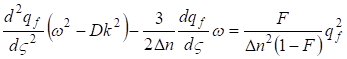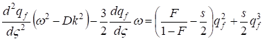 The found equation is the nonlinear differential equation of the second order with square-law nonlinearity. qf = f (ς) We shall search the solution of the equation (31) as a traveling wave ς = kX - ωn (where In this case the equation (31) will be transformed to the kind: