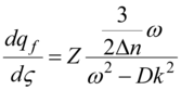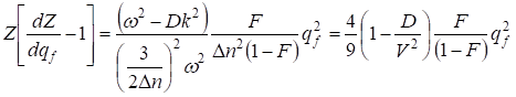 However, the equation (36) allows receive very important analytical result. For this purpose it is used wave substitution ς = 1/Δn2 (kX - ωn) where k there is wave number, ω - dimensionless cyclic frequency of the population waves. In result we shall find: