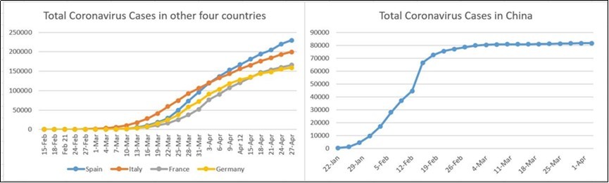 After the outbreak of COVID-19 in China, COVID-19 has also erupted in other countries in the world. Among the countries where new pneumonia outbreaks, Spain, Italy, France and Germany are more serious1. As of April 27, Spain, Italy, France and Germany have each accumulated diagnosed 229842 cases, 199414 cases, 165,842 cases, 158758 cases, the new crown pneumonia spread and various measures of everyday life and people's social normal operation had not Estimated impact2.