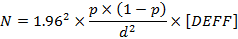 Emergency Nutrition Assessment (ENA) Software was used to calculate the sample size for the study based on the following formula: