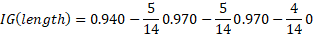 · Information gain for the “Length” attribute is equal to: