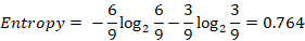 In this example (Figure 2), we take six green triangles, and two red circles, then calculate again the entropy value for this case: