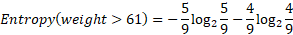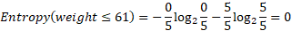 The information gain of the value”61” will be the information gain of the weight attribute (Table 7).