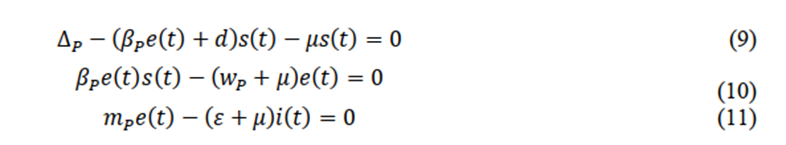 From this expression, the equilibrium point is reached when λ1 < 0 i.e., when (d+μ)(wp+μ)>βpΔp