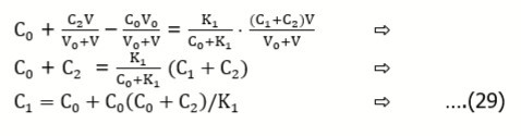 K1 ⋅ (C0/C-1)= C ⇨ C0 = C+C2/K1⇨ C0 = C+C2 ⋅ 10pk1 …...(14)