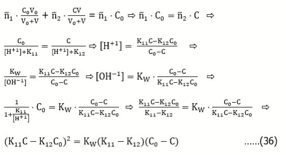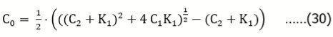 Denoting K1⋅(C0/C-1)= y, we have: y – KW/y – C = 0 ⇨ y2 – C⋅y – KW = 0 ⇨ y = C/2 ⋅ (1+(1+4KW/C2)1/2) ...(15)