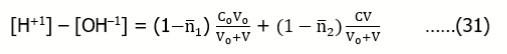At V = 0, from Eq. 24 we have C0= [OH-1] at [H+1] <<[OH-1]. Then we obtain, by turns,