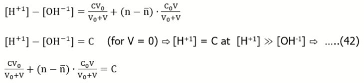 Assuming [H+1] >> [OH-1], from Eq. 42 we get [H+1] = C. Putting it into (3), from (7) we get