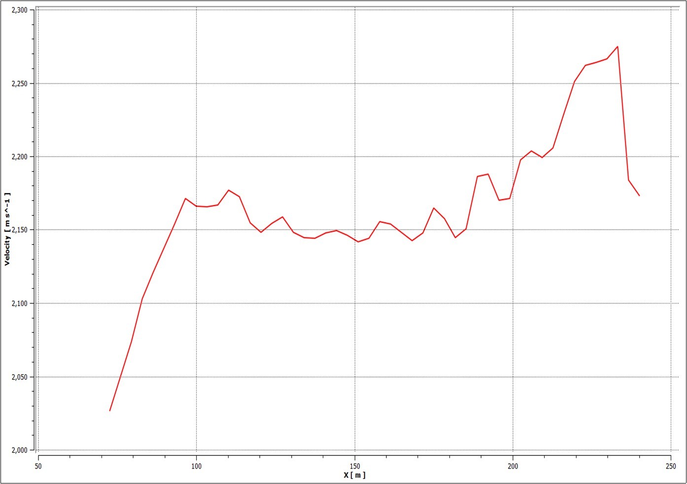 Figure 10.Chart showing Velocity variation in the downstream in X direction over the shell
