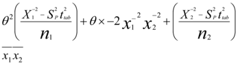 where and are mean recovery values at selected measurements, respectively. Sp is the pooled standard deviation and ttabis the tabulated one-sidedt-value at 95% confidence level.