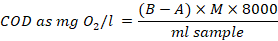 Dissolved oxygen (DO) was taken using the WTW portable water probes calibrated on the field day using a reference temperature set at 25 °C 39. The biological oxygen demand (BOD) was determined using dilution technique 5210B which started by measuring the initial DO of the sample. Briefly, 2 ml of the sample was poured on the membrane filter that was placed on a petri dish containing a nutrient-rich agar medium that supports the growth of bacteria then incubated at 35-37 °C for 12-24 hours. The final DO was measured after 5 days, and BOD was obtained by calculating the difference between the initial and final DO which was divided by the dilution factor (ratio of sample volume to total volume of diluted sample) 40. The chemical oxygen demand (COD) was determined using the closed reflux dichromate method which involved refluxing a 10 ml sample in a highly 2 ml acidic solution containing a 5 ml excess of potassium dichromate (K2Cr2O7). The mixture was cooled, 2 drops of ferroin indicator were added and titrated with ammonium sulphate until the color change from green to reddish brown was obtained and COD was calculated as follows 41: