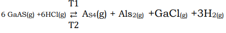 Where T1 is the temperature of the solid GaAs source, T2 is the temperature of the solid GaAs substrate, and T1 > T2. This allows, in effect, indirect distillation of gallium arsenide from the hot source at temperature T1 to the cooler substrate at temperature T2 through an intermediate gas phase of different chemical composition.