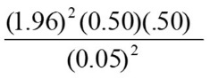 Z=reliability coefficient for desired interval (CI) for 95% = 1.96