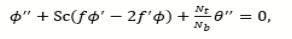 where r=(C0 𝜸C)/(T0 γT ), M=(L2 σl B0)/μ, Pr=νfl /αfl is the Prandtl number Nb=(ρc)np DB𝜸 C0 x2) / (ρc)lf L2 a), Nt=(ρc)np DTh x2) / (ρc)lf L2 a), L= μν fl)/(σ0 T0 γT) are the Marangoni factor (r), modified Hartman number (M), Prandtl factor (Pr), Brownian motion parameter (Nb), Schmidt number (Sc), Thermophoresis parameter (Nt) and reference length (L), respectively. The second grade fluid parameter (α) is defined as α1/(ρfl L2).