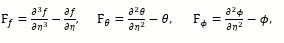 are the general solutions where Mi are the arbitrary constants for i=1-7 and fm* (η) ,θm* (η), ϕm* (η) are special solutions.