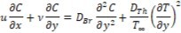 Here u , ν are the horizontal and vertical velocity components, respectively v fl. is the kinematic viscosity, ρfl is the density of fluid B0 is the magnetic effect involved in the model for MHD, σ is the surface tension, αfl is is thermal diffusivity of the fluid, the ratio between heat capacity of the nanoparticles (ρc)np and heat capacity of base fluid (ρc) fl. DBr is Brownian diffusion, DTh is Thermophoresis.