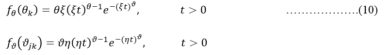 We assume that the random effects θk, ϑjk, and εijk, are independent and are Exponentially distributed with density functions,