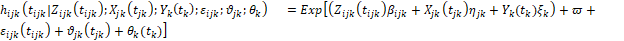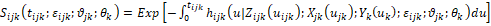 Here ρijk (tijk) =exp[-Λijk(tijk)] and Λijk(tijk)is the integrated hazard corresponding to