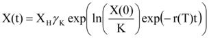 Where X(0) is the size or mass at nesting time (time=0), r(T) is the growth rate at the beginning of the curve, and K is the carrying capacity with