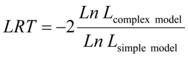(Likelihood Ratio Test, with Ln L being the logarithm of the likelihood) is distributed as a χ2 with the degrees of freedom being the difference of number of parameters between the most complete model and the simplest one 41.