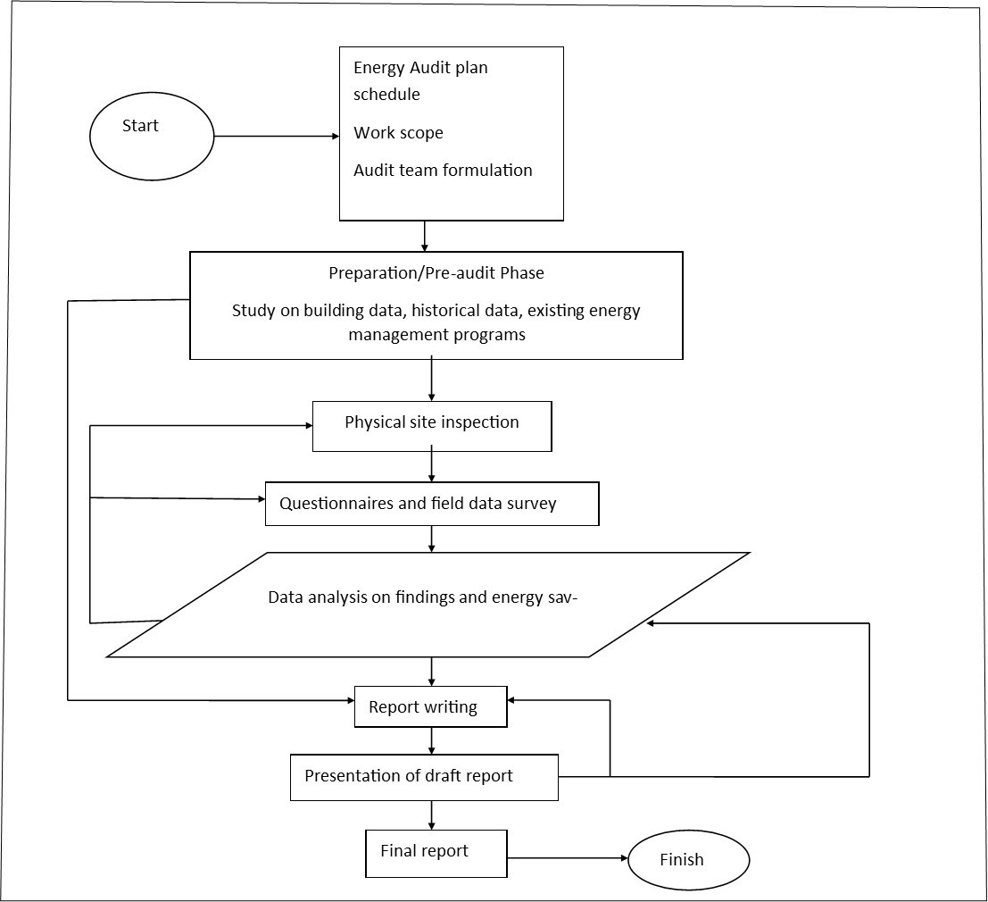 1. Preparation/ Pre-audit phase: This involves collecting data on the hostel facility, including its physical characteristics, energy consumption history, and any existing energy management systems or programs.