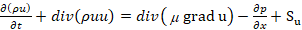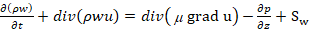 Where ρ denotes the force on the fluid, μ is the dynamic viscosity, Su, Sv and Sw are the source term.