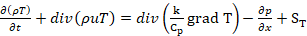 In which T is the temperature, Cp is the Specific heat capacity, k is Heat transfer coefficient, ST is the source term.