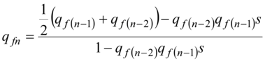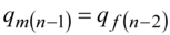 Let's transform the formula (5) using pm(n-1) = 1 - qm(n-1) and pf(n-1) = 1 - qf(n-1). For recessive allele frequency at women in Х-chromosomes the formula (5) is transformed: