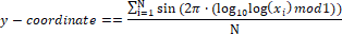 In the Mantissa Arc Test, itwas necessary to calculate a center of mass of the set of values obtained from the mantissa values when considering that the data is distributed in a unit circle, where the center of the circle is given by: