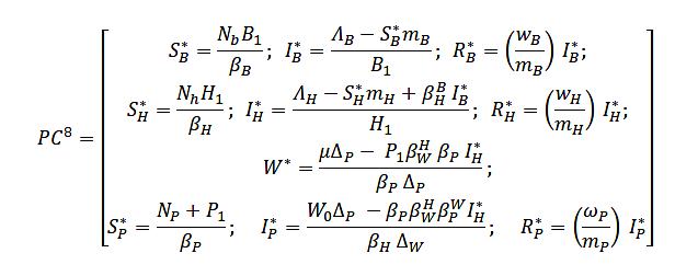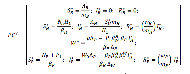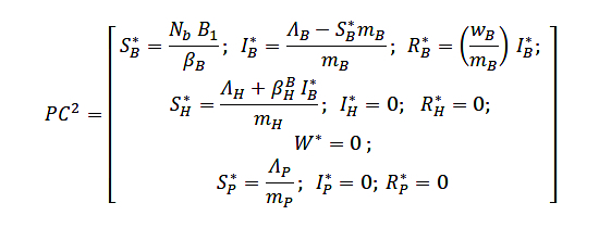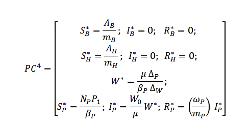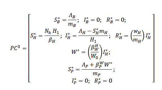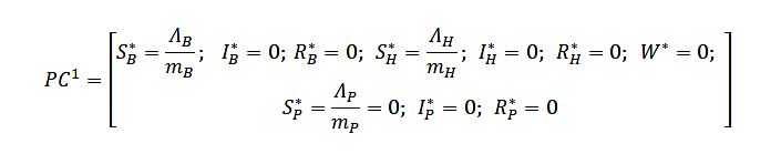 The first critical point (PC1) is the trivial solution of the system, that is, when there are no infections in any of the populations: