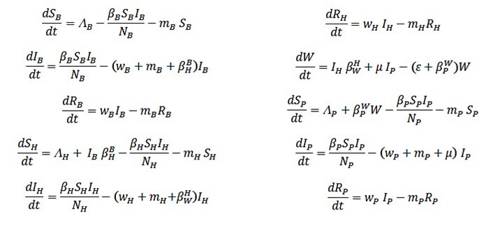 mB, mH and mP represent the death rate of bats, pangolins and human, respectively. In the case of the human population, mP is equal to 0.0000456.