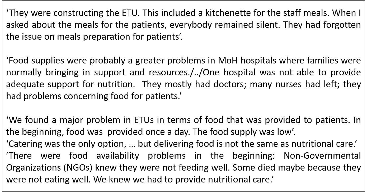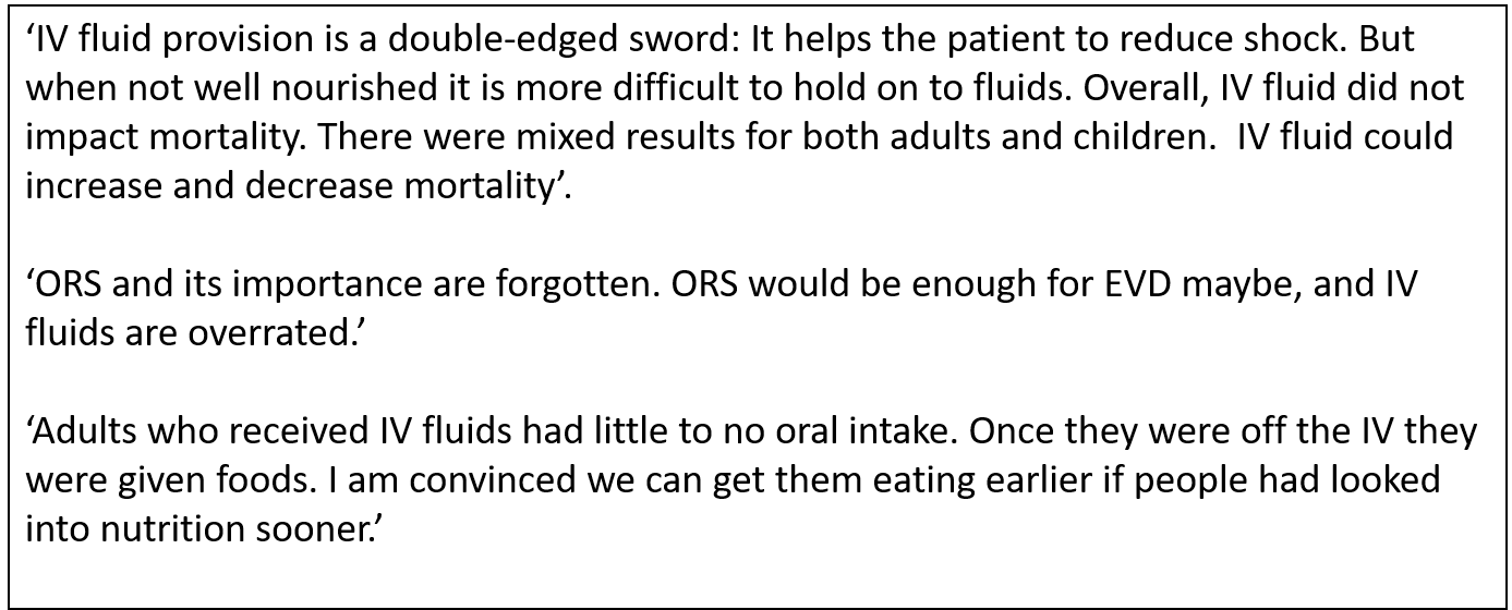Nutritional Care for EVD Patients in ETUs – Practical Experiences from Interviewed Practitioners
