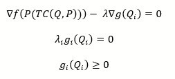 By applying Kuhn Tucker conditions, the total cost is minimized by finding the solution of Q1, Q2, Q3, Q4 with Q1, Q2, Q3, Q4