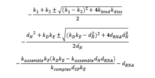 Where k1,k2 and k3 as (kbind+dv),(kfuse+kdiss+dv) and (kuncoat+dendsome) respectively;