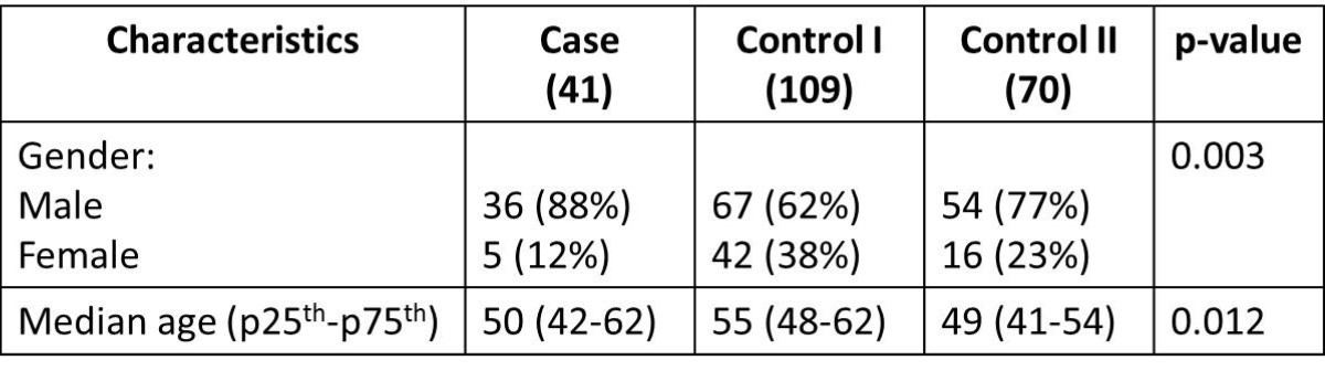 For the Case and Control I group age and gender were collected from the patients’ clinical diaries.
