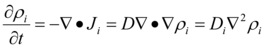 When the diffusion is neither absorbed nor emitted by the medium, we obtained the equation of continuity that is also the conservation law of substance and is equivalent to Fick’s second law, using divergence theorem 21 and equations 2 and 5: