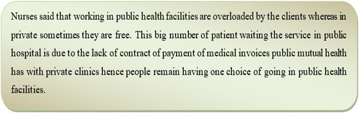 During the interview, people living in Kigali said that dental therapy is a service that is needed to be added to the services offered at health center and staffs should be increased because a patient spend much time at public health centers waiting the service. They desire public mutual health insurance to work with private clinics and pharmacies.