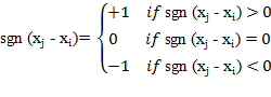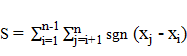 where n is the number of data points, xiand xj are the data values in the time series i and j (j > i), respectively, and sgn (xj - xi) is the sign function that is defined by,