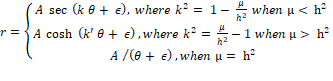 where: r = A sec (kθ +ε), where k2 = 1-(μ/h2) , when μ < h2 . (3)